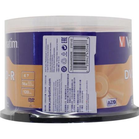 Диски DVD-R 4.7Gb Verbatim 16х 50 шт Cake Box <43548>