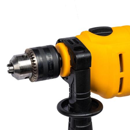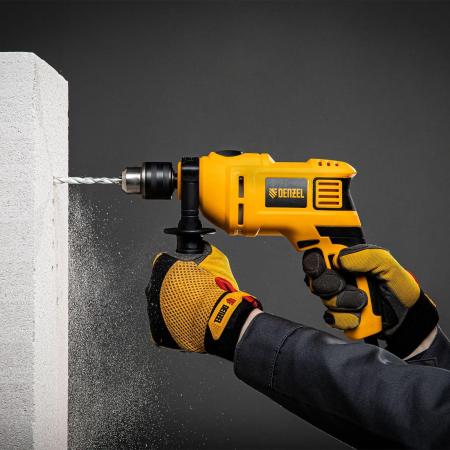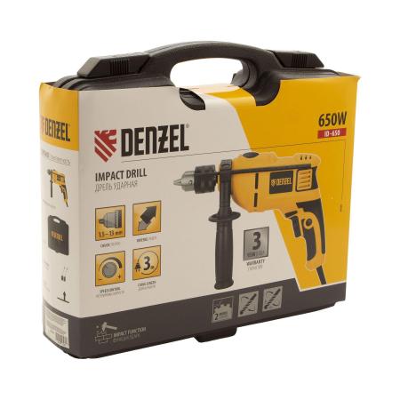 Прочие особенности и свойстваДрель ударная Denzel ID-650 предназначена для работы с деревянными, металлическими конструкциями, кирпичными и бетонными основаниями. Благодаря максимальному размеру патрона 13 мм сверлит отверстия в древесине до 25 мм, бетоне до 13 мм и металле до 10 мм. Плавная регулировка частоты вращения патрона 0-3000 об/мин и мощность 650 Вт позволяют подобрать оптимальную скорость в зависимости от особенностей материала. Высокая частота 48000 уд/мин обеспечивает снижение нагрузки на пользователя. Долгий срок службы двигателя благодаря усовершенствованной конструкции щеточного узла, медной обмотке, ударопрочному пластику и эффективной системе теплоотвода. Небольшой вес 3.3 кг и удобные обрезиненные рукоятки позволяют комфортно работать длительное время.