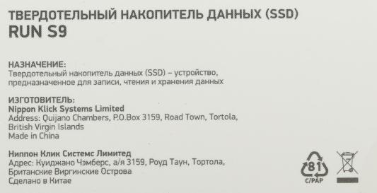 SSD накопитель Digma Run S9 256 Gb SATA-III DGSR1256GS93T