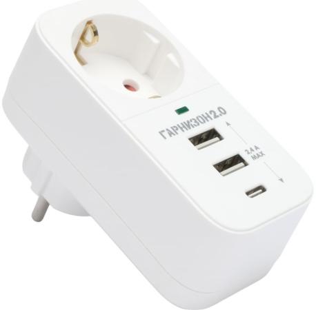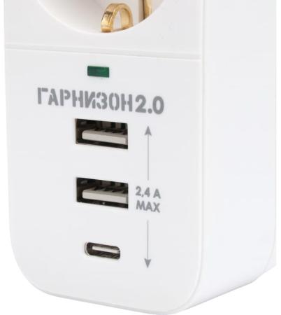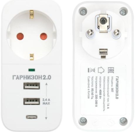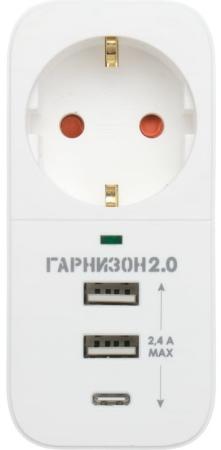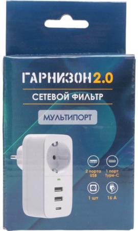 Гарнизон Сетевой фильтр SKT-1-CU2-W 2.0 Мультипорт однорозеточный, 1р, 16А, 1xType-C, 2 х USB, ур.защиты 2+, белый (21440)
