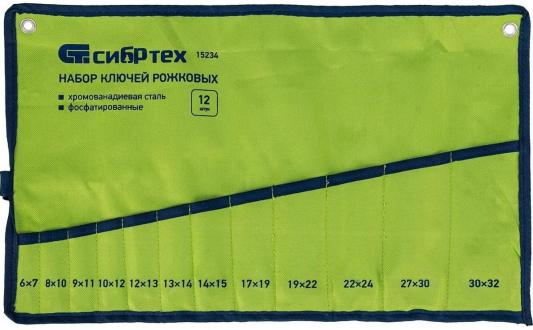 Набор ключей рожковых, 6 - 32 мм, 12 шт., CrV, фосфатированные// Сибртех