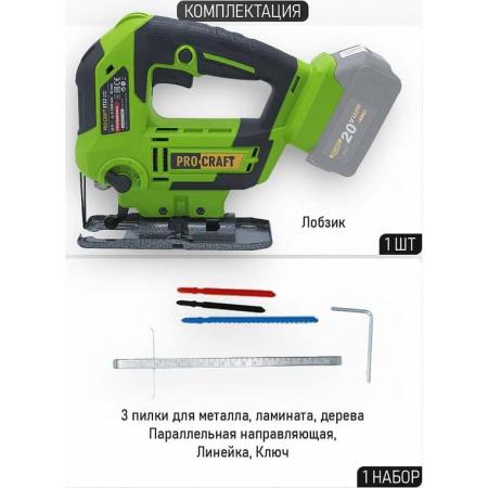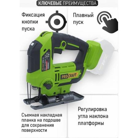 PROCRAFT Лобзик аккумуляторный 20В, 85мм ST22