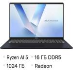 Ноутбук Asus VivoBook V16 V3607VH-RP046 Core 5 210H 16Gb SSD1Tb NVIDIA GeForce RTX5050 8Gb 16" IPS WUXGA (1920x1200) без ОС black WiFi BT Cam (90NB16L1-M004D0)